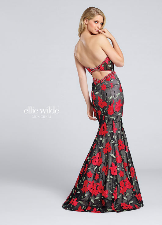 Robe sans bretelles en dentelle brodée à la main, encolure dégagée à la main et plissée avec panneau de modestie illusion, ceinture perlée, dos bandeau ouvert, ourlet crin. Courroies amovibles incluses.