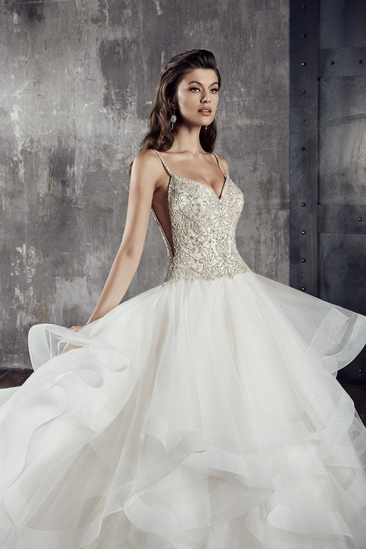 Delicate layers of tulle topped with an exquisite beaded top with cut-out sides.