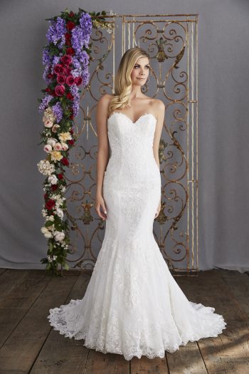 Strapless lace Fit and Flare ,with Illusion Back and Sheer Waist Insets